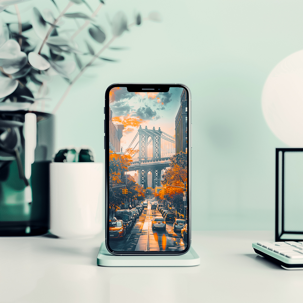Transform your iPhone screen into a window to the iconic sights of New York City with our collection of six AI-created wallpapers. Each design encapsulates the bustling energy and timeless allure of the Big Apple, offering a unique perspective on its famous landmarks, from the towering skyscrapers of Manhattan to the serene beauty of Central Park. Whether you're strolling through Times Square or gazing at the Statue of Liberty, these wallpapers bring the vibrant spirit of New York right to your fingertips. With high-resolution graphics and stunning detail, your iPhone will be a stylish tribute to the city that never sleeps. Download our AI-created wallpapers today and carry a piece of New York with you wherever you go.